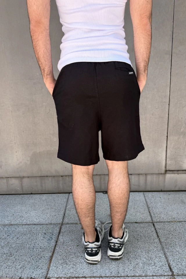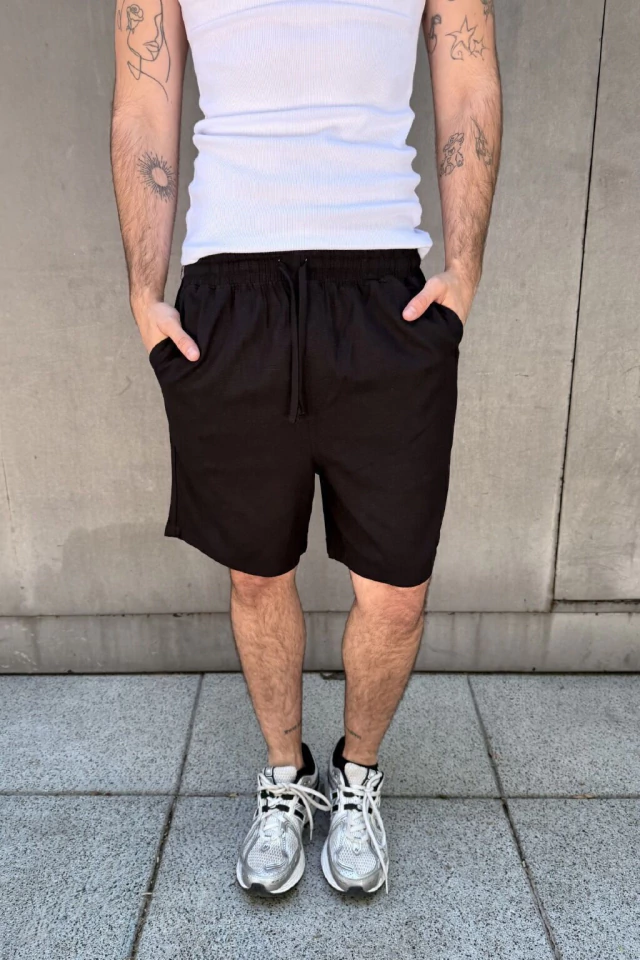 Bermuda simil lino. Cintura elastizada y cordón de ajuste.