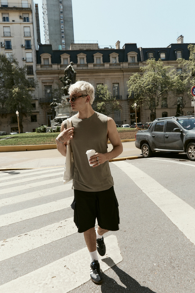 Bermuda cargo de bull calce amplio, 6 bolsillos.