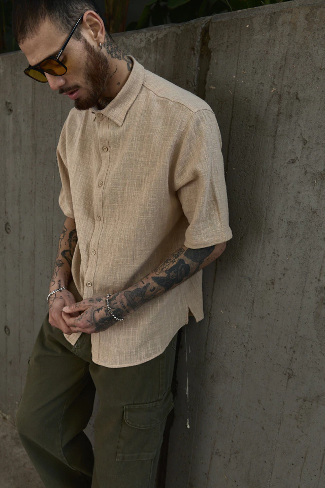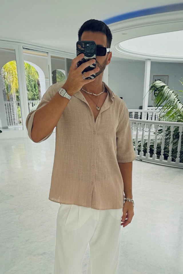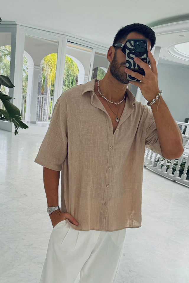 Camisa oversize de manga corta. Hecha en gasa de algodón.