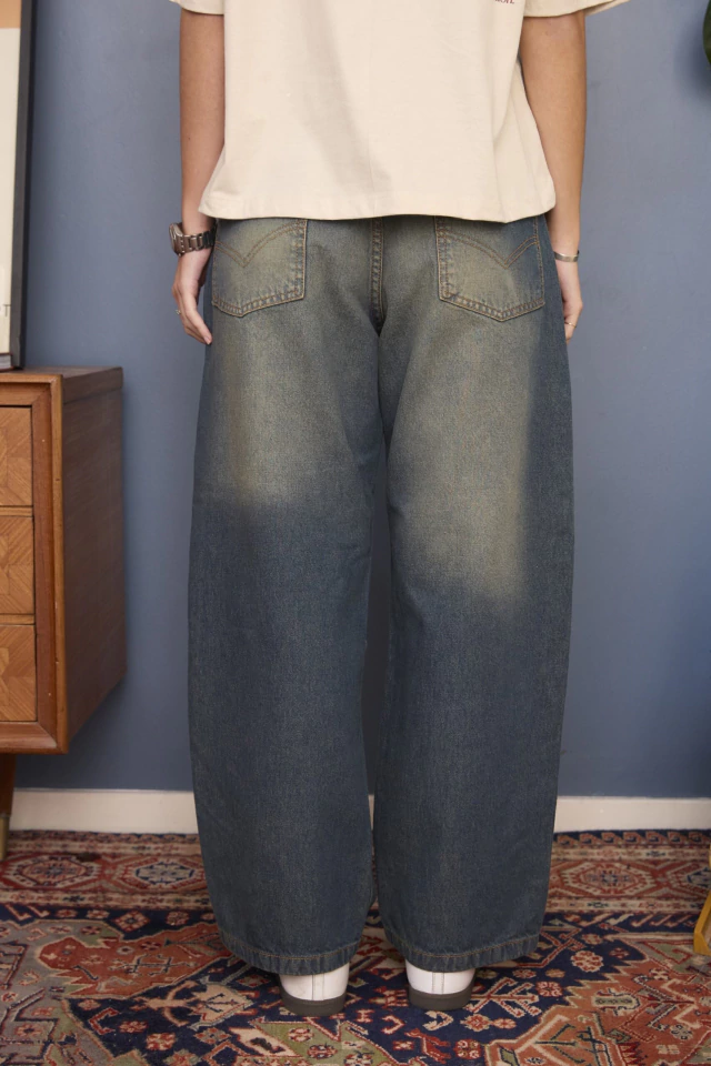 Jean verde, cuatro bolsillos. Molderia over. Tiro alto.