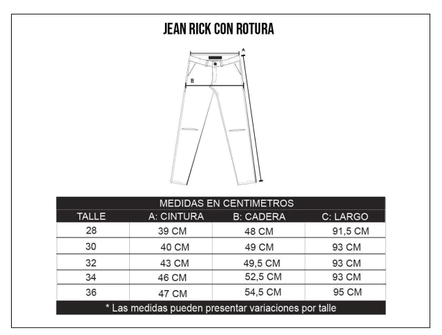 Roturas en rodilla. Calce skinny. Tiro medio.