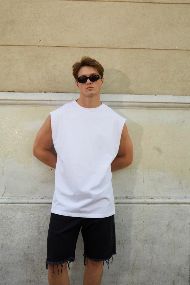 Musculosa oversize lisa, con cuello redondo en ribb.