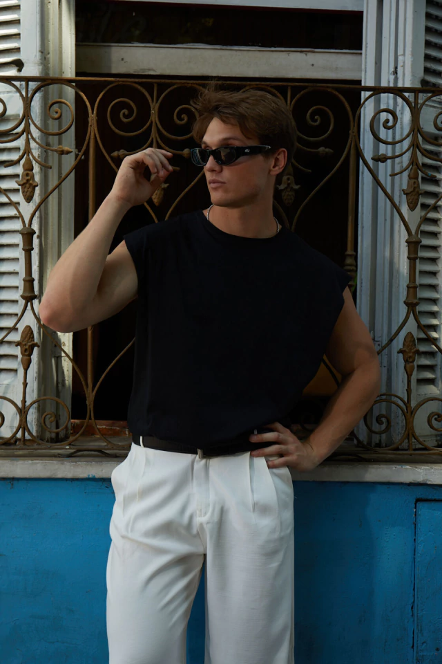 Musculosa oversize lisa, con cuello redondo en ribb.