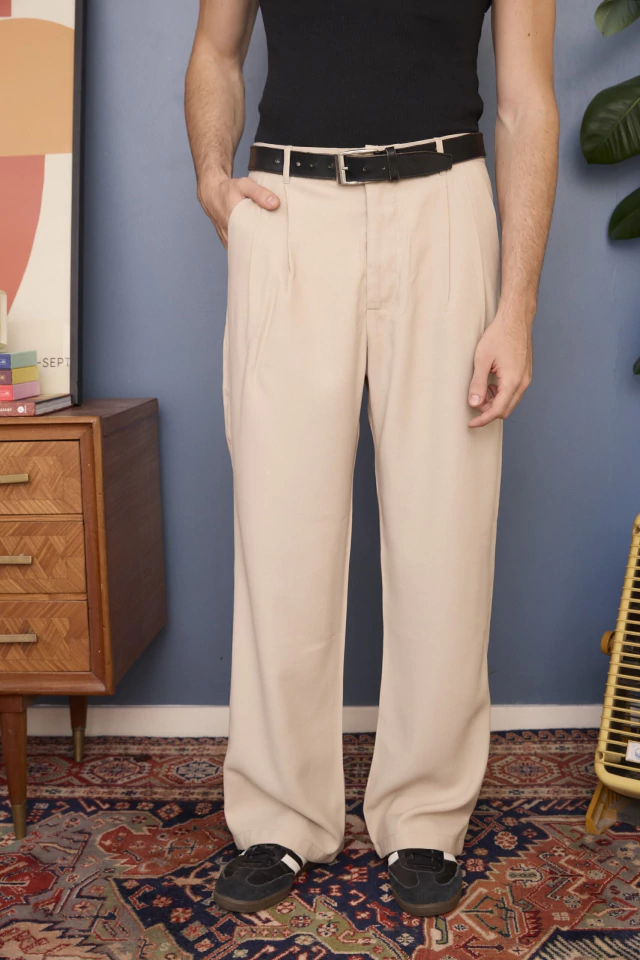 Pantalón sastrero de viscosa calce amplio, con pinzas en el delantero y bolsillo ojal trasero.