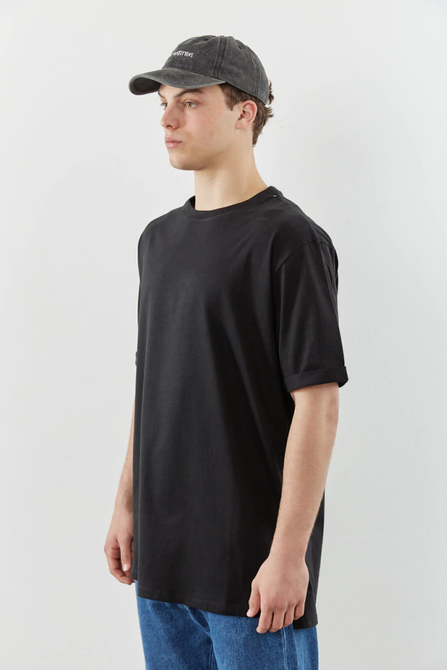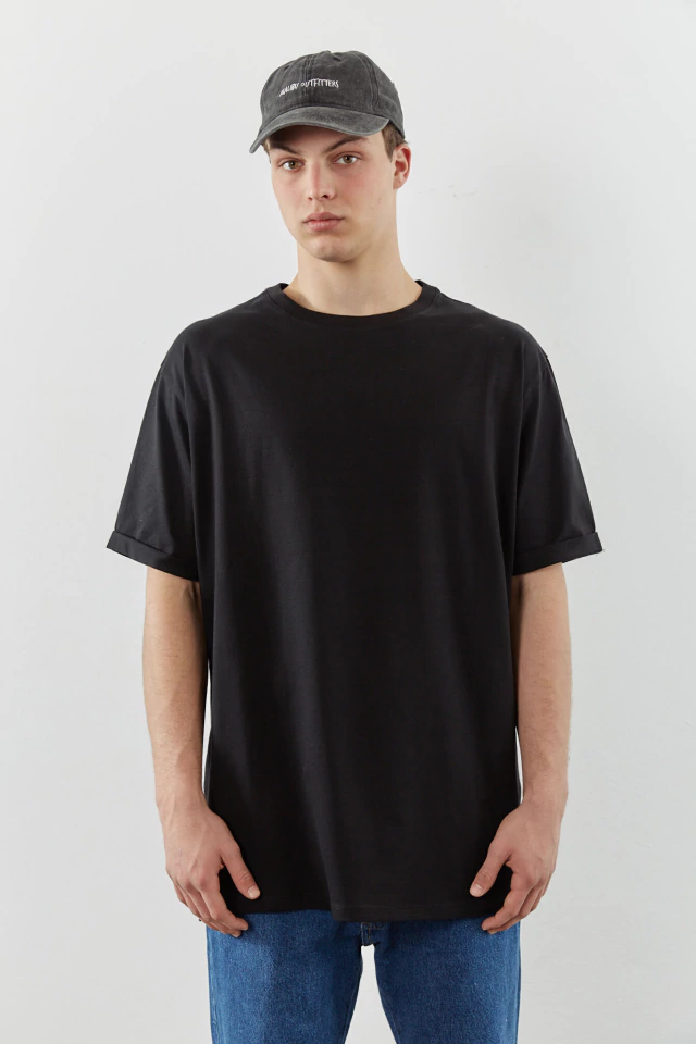 Remera corte oversize, mangas cortas con ruedo rebatido y cuello redondo en ribb.