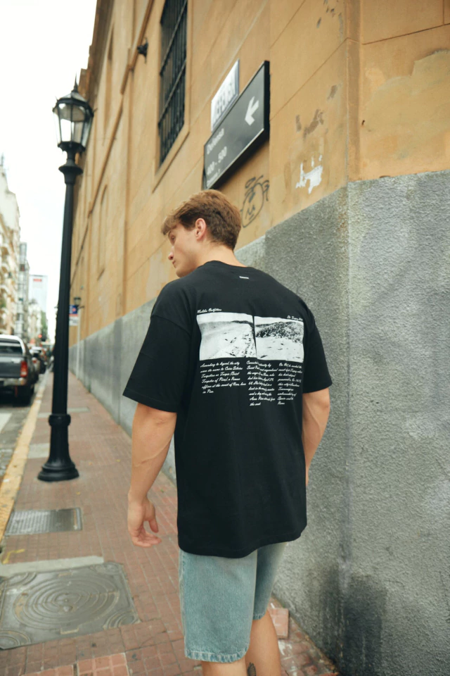 Remera corte oversize estampada, mangas cortas con cuello redondo en ribb.