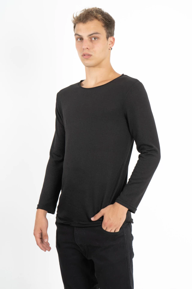 Ruedos y cuello con terminaciones al corte. Calce al cuerpo.